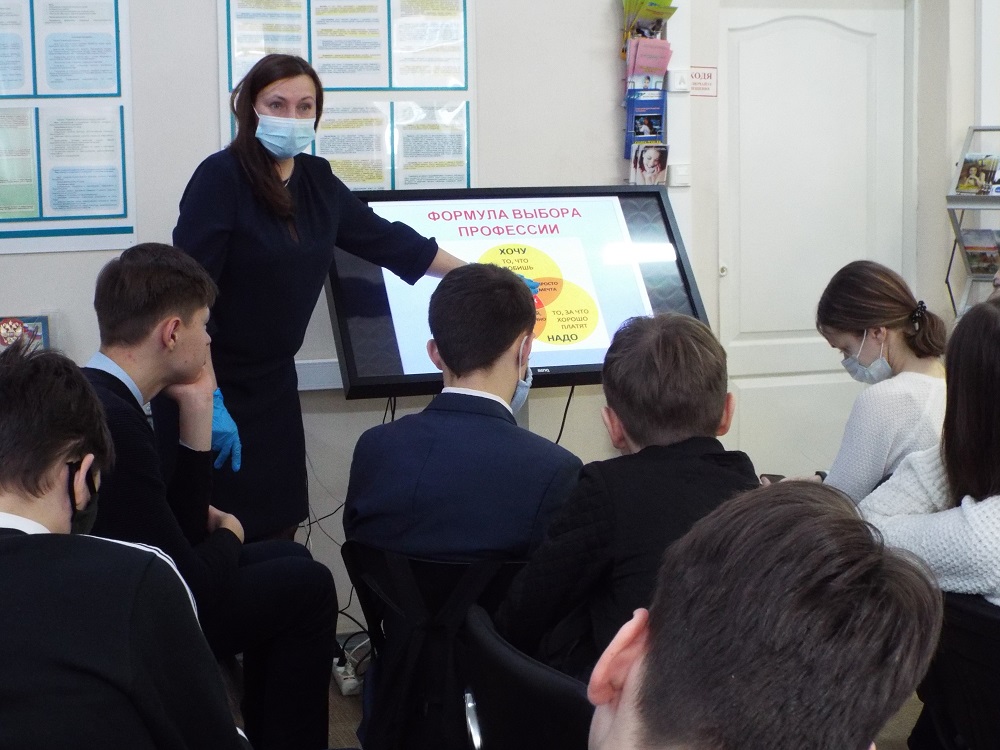 Ведущий специалист ЦЗН Евгения Гурьянова рассказала и наглядно продемонстрировала ребятам, насколько важно заблаговременно готовиться к выбору будущей профессии.